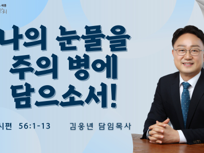 제목나의 눈물을 주의 병에 담으소서! 설교김웅년 담임목사 본문시편 56:1-13