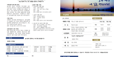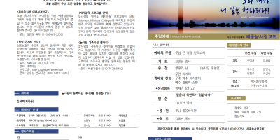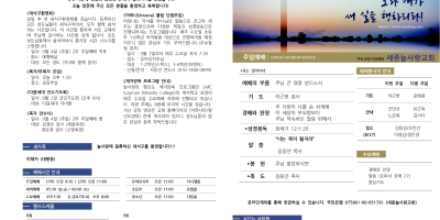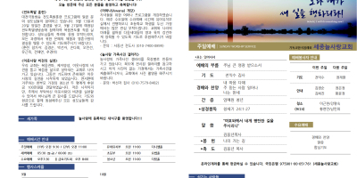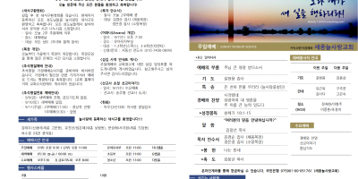 세종늘사랑교회의 매주 예배 순서와 새로운 소식을 확인하실 수 있습니다.